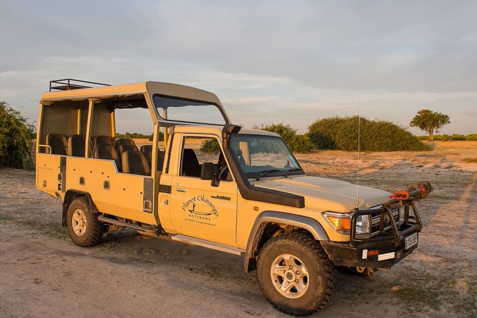 Für diese Botswana Safari wird ein speziell umgebautes, offenes Safari-Fahrzeug eingesetzt.
